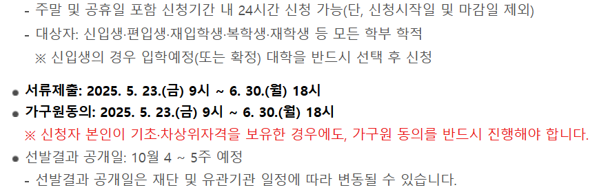 - 타 생활비 장학금과 중복수혜 제한 있음